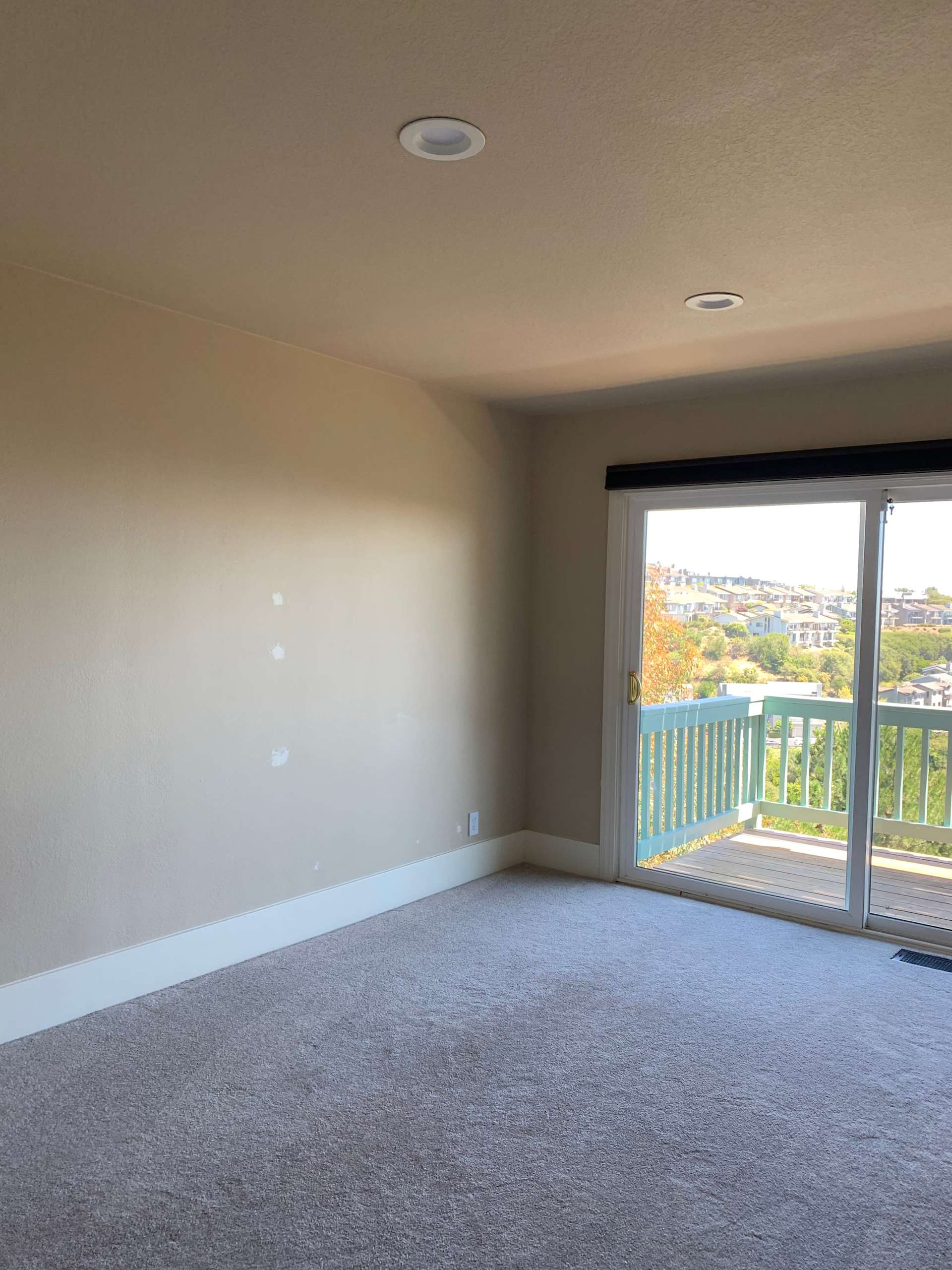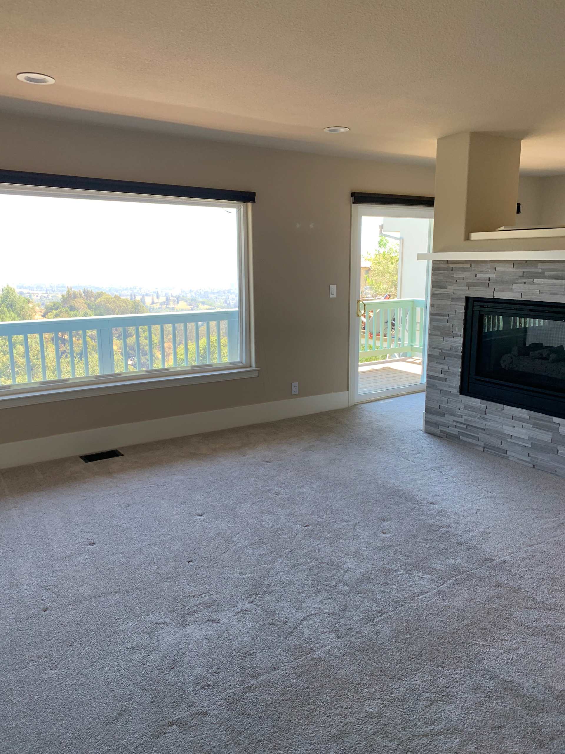 The biggest change that had to take place was in the house’s paint job. Through years of weathering the elements, the exterior paint had lost its original blue-green hue and was discolored and peeling in a lot of places. Stains from leaks and water damage were present on some of the walls. The interior white paint had taken on a yellowish hue and needed a touch up. On the outside, the top patio area, balcony railings, and areas of the backyard deck also sported peeling paint.