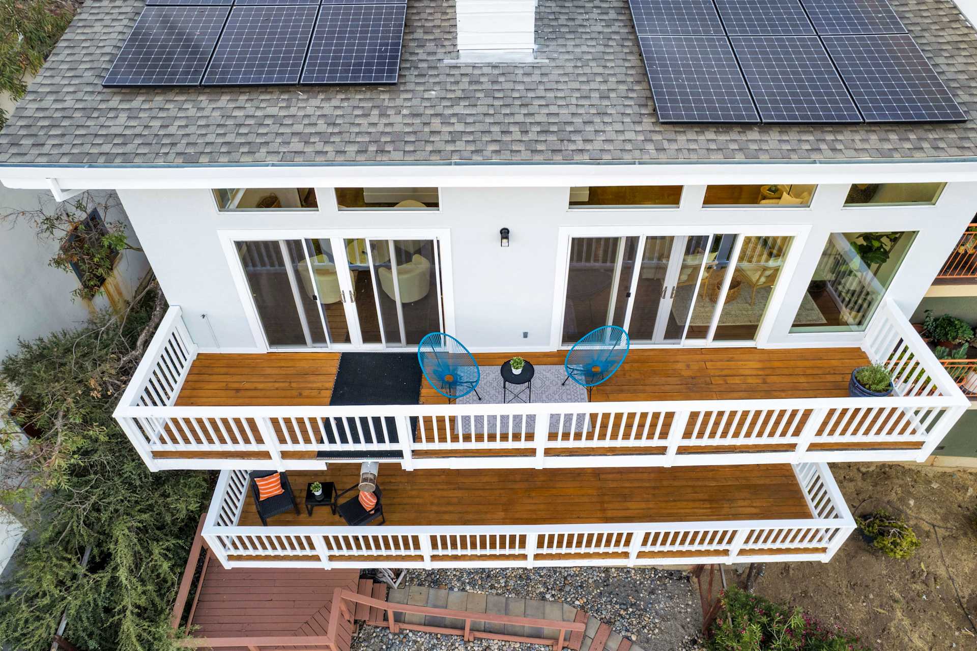 Once we had located all the problem points, we partnered with one of our trusted vendors, Diego, to fix them. We repainted the whole interior and exterior of the home. For the exterior paint, Phoebe’s friend who works in Benjamin Moore was able to recommend colors based on an inspiration photo she sent him. The balconies were also given a fresh coat of paint. The deck and the balconies were sanded and stained to bring out the natural color of the wood. Every window inside and out was thoroughly cleaned. We also removed the door to the stairs leading to the lower floor to create a more open flow.